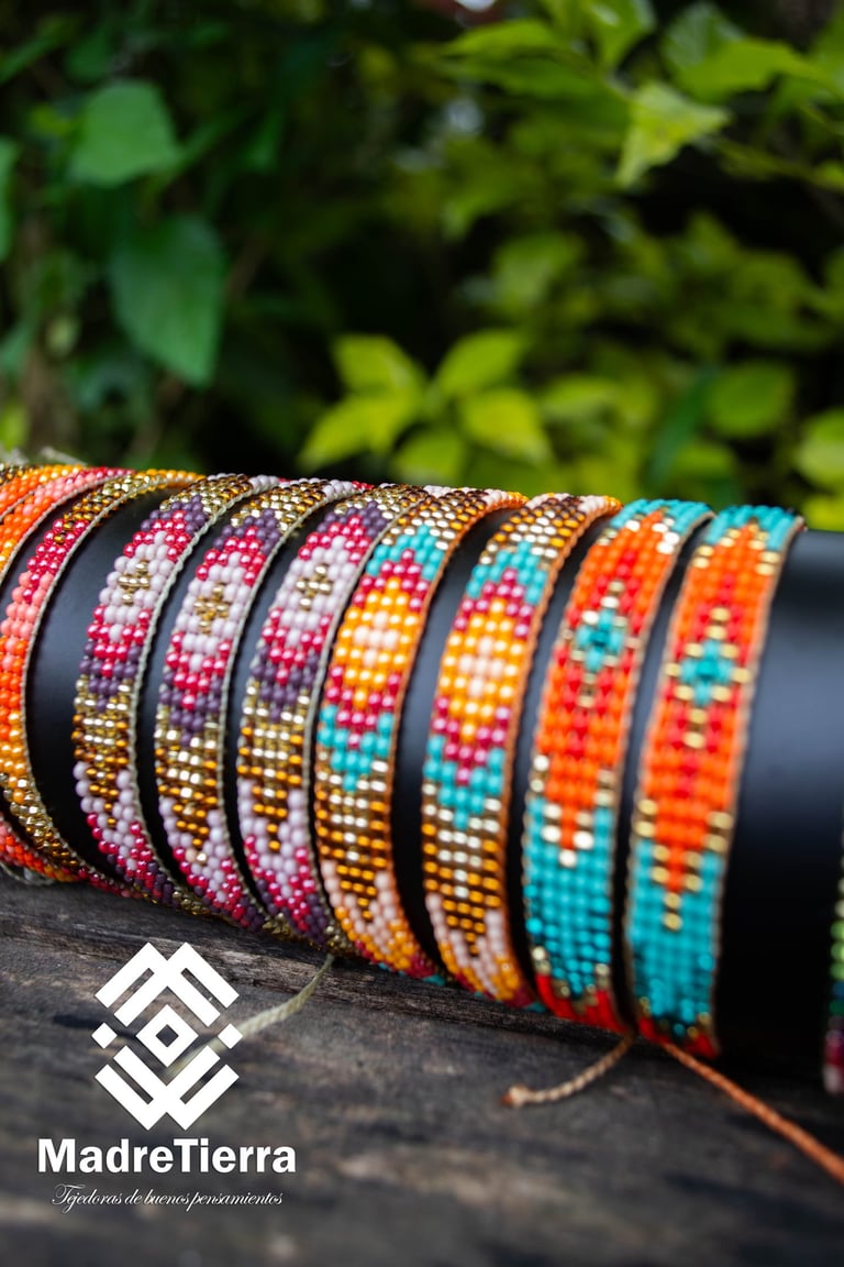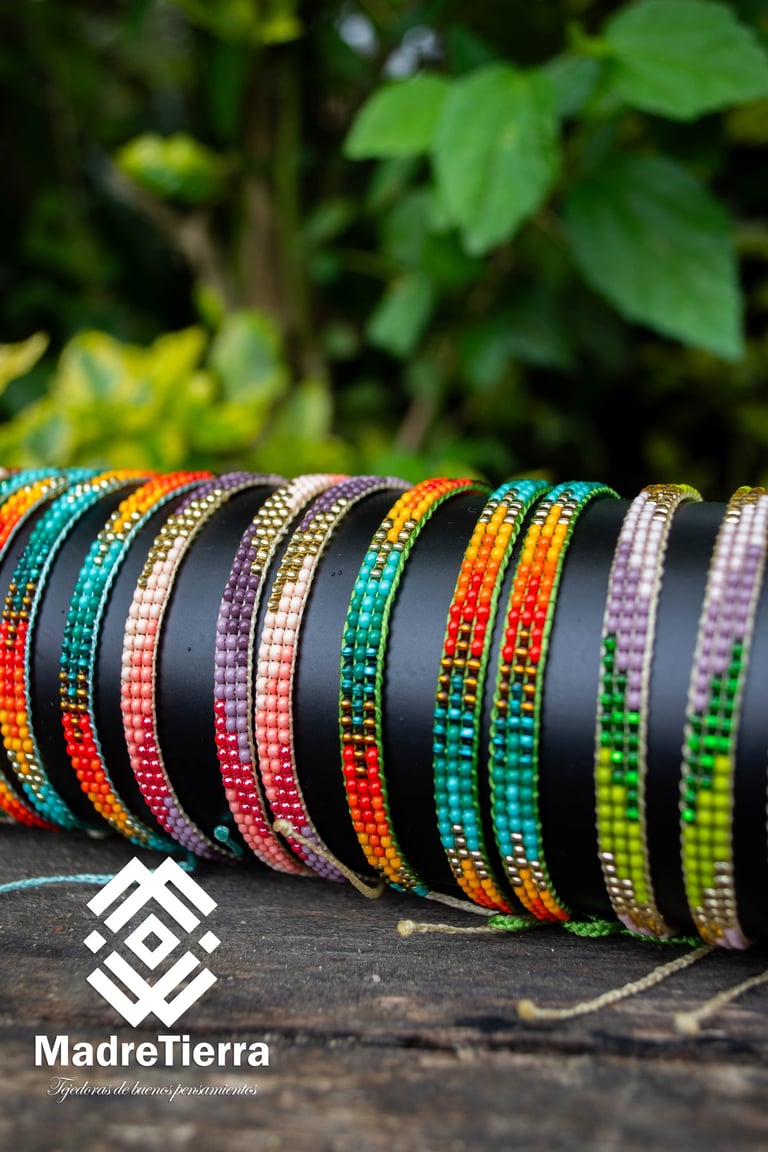 Las pulseras en chaquira de Madre Tierra son una fusión de colores vibrantes y patrones tradicionales del pueblo Kamëntŝá Biyá. Elaboradas a mano con esmero, cada pulsera cuenta una historia ancestral, aportando un toque de autenticidad y belleza a tu estilo diario.